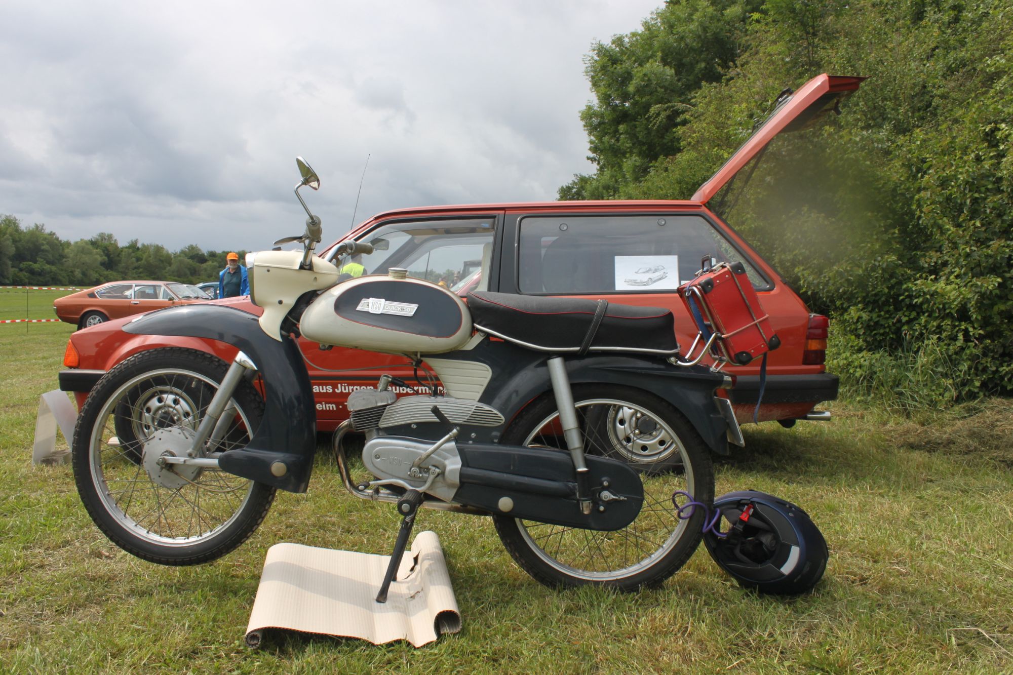 Während wir aufbauten gab es kräftige Regenschauer, auch den Tag über war es recht trüb und Regen drohte; während des Abbaus wurden wir dann nochmal kräftig geduscht. Angesichts dessen können wir mit dem Besuch von über 140 Oldtimern noch zufrieden sein und der Besuch durch Publikum war ausgesprochen rege. Dank des großen Engagement der OfOs hat wieder alles wunderbar geklappt. Der Carneval Verein Oppenheim (CVC) bot auf „unserem“ Gelände Grillsteaks an und beim ACOG gab es Grillwürstchen und Getränke.