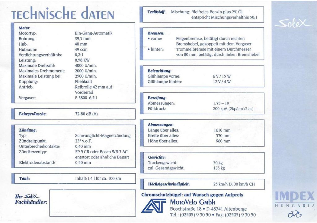 Bilder und Technische Daten von Lothar seiner Velosolex Baujahr 1982